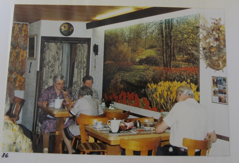 Während in der Gegenwart die Schneedecke in Heideruh langsam wegtaut, sehen wir auf diesem Bild von 1986 ein „Blütenmeer“ im Speiseraum.