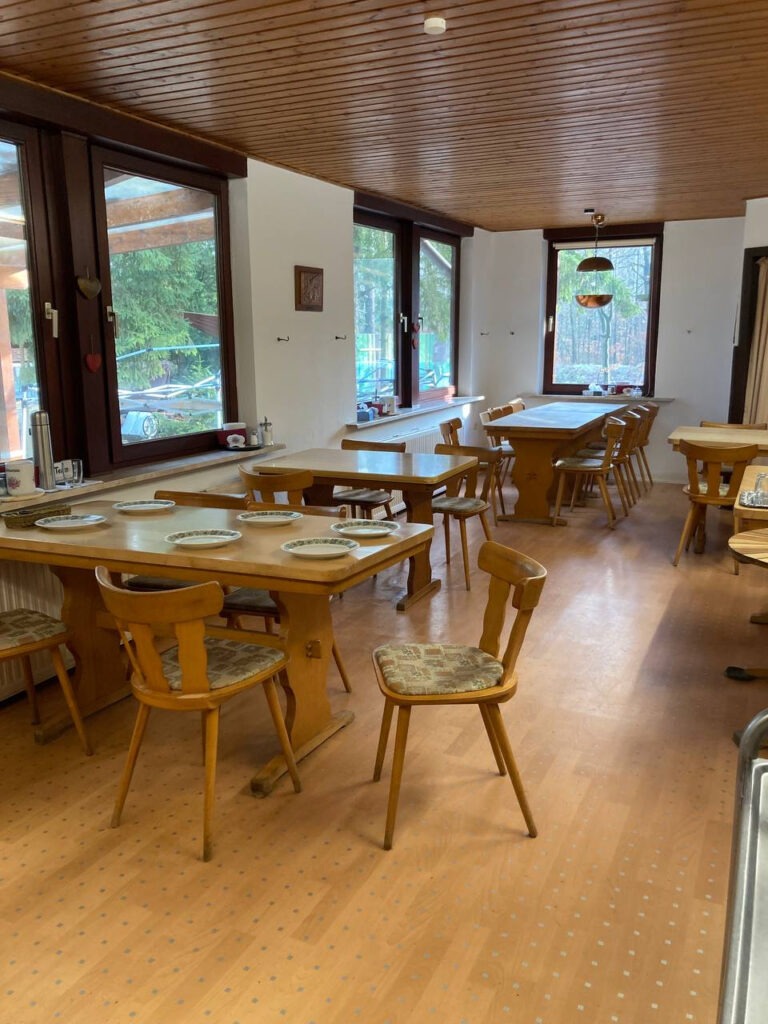 2026 wartet der Speiseraum auf die Neugestaltung bei der nächsten Bauwoche (20.-27. März). Die Esther Bejarano-Wand ist aber schon fertig.