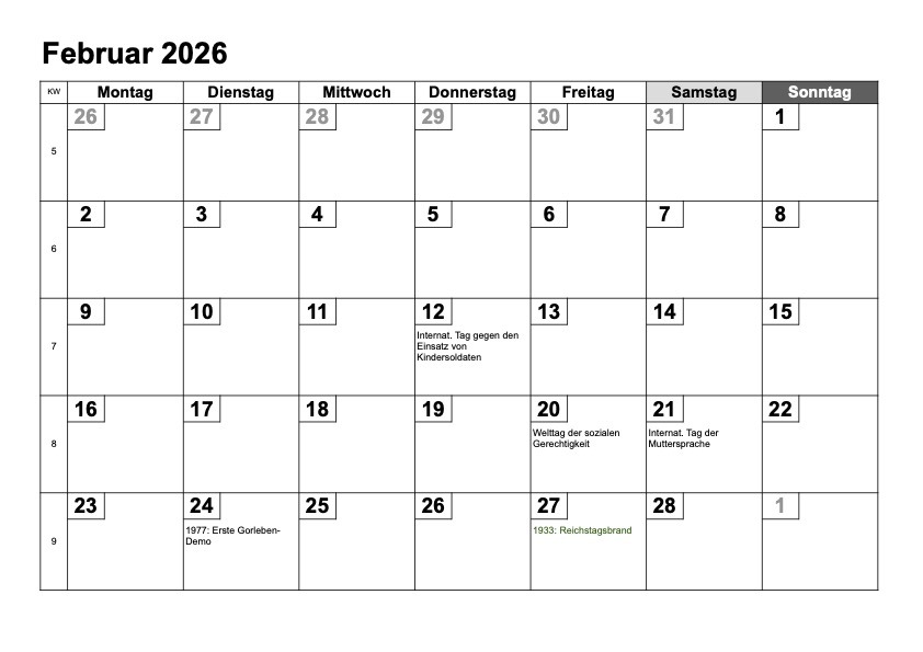 Auch die Jahres- oder Gedenktage, auf die wir im Heideruh Kalender 2026 im Februar aufmerksam machen, erinnern daran, dass die Einhaltung der Menschenrechte und demokratische Grundrechte sowie soziale Gerechtigkeit alles andere als selbstverständlich sind.